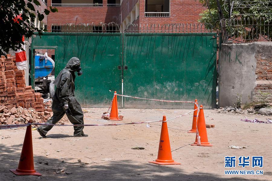5月6日,在印度新德里,一名印度全國救災(zāi)應(yīng)急部隊成員在煤氣泄漏事故發(fā)生地附近的學(xué)校檢查。據(jù)警方人員稱,新德里6日發(fā)生煤氣泄漏事故,約有200名學(xué)生出現(xiàn)不同程度的中毒癥狀入院治療。新華社/法新