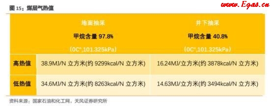 煤層氣是指儲(chǔ)存在煤層中以甲烷為主要成分、以吸附在煤基質(zhì)顆粒表面為主、部分游離于煤孔隙中或溶解于煤層水中的烴類(lèi)氣體,是煤的伴生礦產(chǎn)資源,屬非常規(guī)天然氣,是近一二十年在國(guó)際上崛起的潔凈、優(yōu)質(zhì)能源和化工原料。煤層氣或瓦斯的熱值跟甲烷(CH4)含量有關(guān),與其他燃料相比較,其熱值是通用煤的2-5倍,1立方米純煤層氣的熱值相當(dāng)于1.13kg汽油、1.21kg標(biāo)準(zhǔn)煤,其熱值與天然氣相當(dāng),可以與天然氣混輸混用,而且燃燒后很潔凈,幾乎不產(chǎn)生任何廢氣,是上好的工業(yè)、化工、發(fā)電和居民生活燃料。煤層氣熱值具體如下表所示: