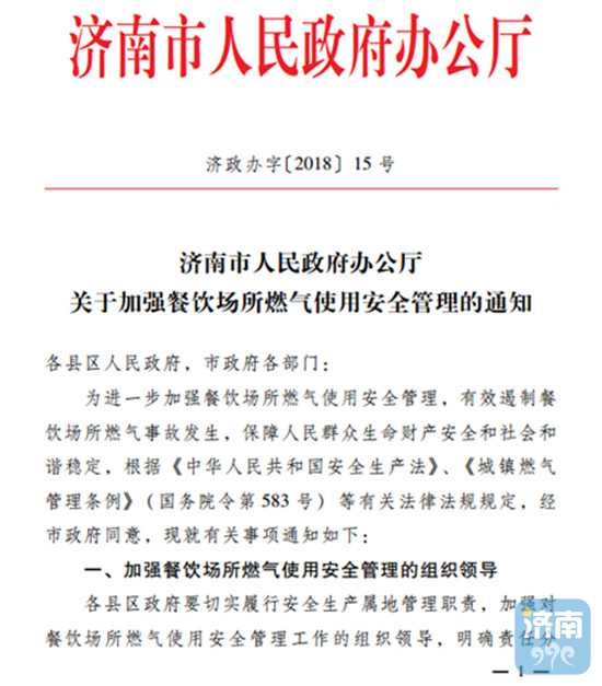 從濟(jì)南市安監(jiān)局獲悉,為進(jìn)一步加強(qiáng)餐飲場(chǎng)所燃?xì)馐褂冒踩芾恚行Ф糁撇惋媹?chǎng)所燃?xì)馐鹿拾l(fā)生,保障人民群眾生命財(cái)產(chǎn)安全和社會(huì)和諧穩(wěn)定,濟(jì)南市政府辦公廳近日印發(fā)《關(guān)于加強(qiáng)餐飲場(chǎng)所燃?xì)馐褂冒踩芾淼耐ㄖ罚ㄒ韵潞?jiǎn)稱《通知》),明確要求各縣區(qū)每半年要至少開展一次餐飲場(chǎng)所燃?xì)馐褂冒踩珜m?xiàng)整治活動(dòng)。