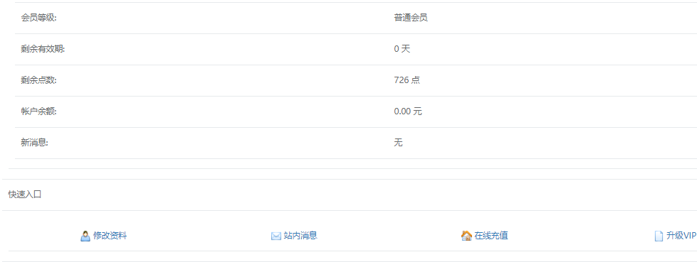 登陸后 就可以查看自己的點數(shù)權(quán)限等信息!