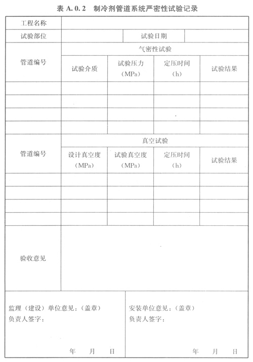 A02制冷劑管道系統(tǒng)嚴密性試驗記錄可按表A02的格式記錄。