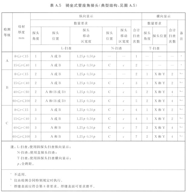 備種類型焊接接頭的檢測等級,見圖A.1~圖A.7和表A.1~表A.7。