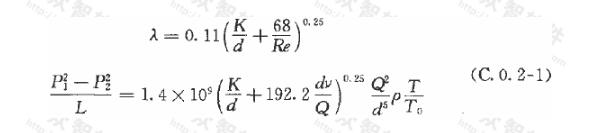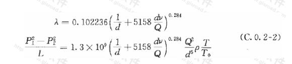 注:除附錄C所列公式外,其他計算燃?xì)夤艿滥Σ磷枇ο禂?shù)(λ)的公式,當(dāng)其計算結(jié)果接近本規(guī)范式(6.2.6-2)時,也可采用