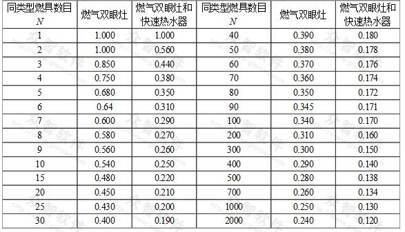 表F居民生活用燃具的同時(shí)工作系數(shù)K