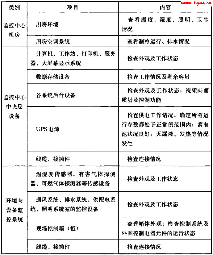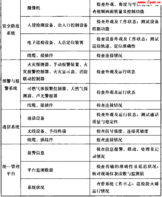 表A 監(jiān)控與報警系統(tǒng)巡檢主要內(nèi)容
