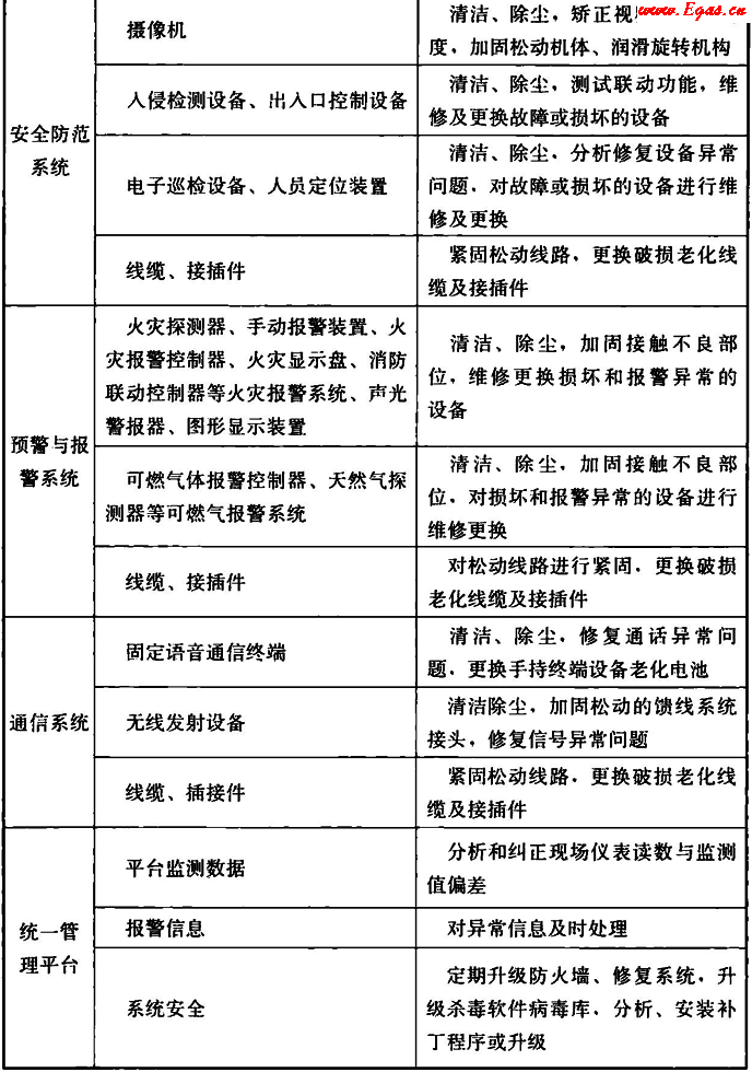 表B 監(jiān)控與報警系統(tǒng)維護(hù)主要內(nèi)容