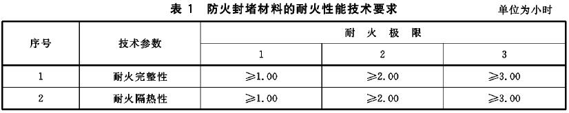 5.2.2  防火封堵材料的耐火性能應(yīng)符合表1的規(guī)定。