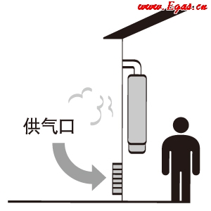給氣口的截面積應(yīng)大于熱水器排氣管的截面積,其位置應(yīng)設(shè)在室內(nèi)高度二分之一以下,能直通大氣的地方;