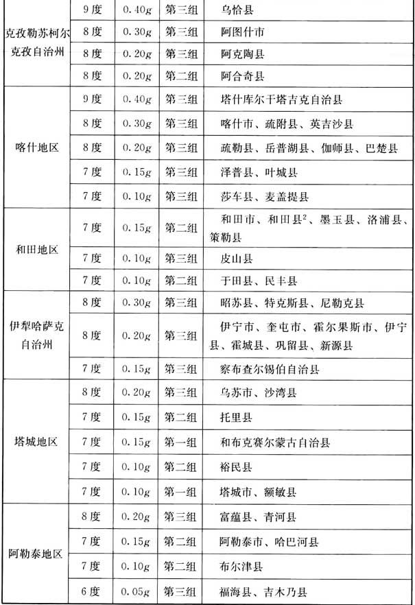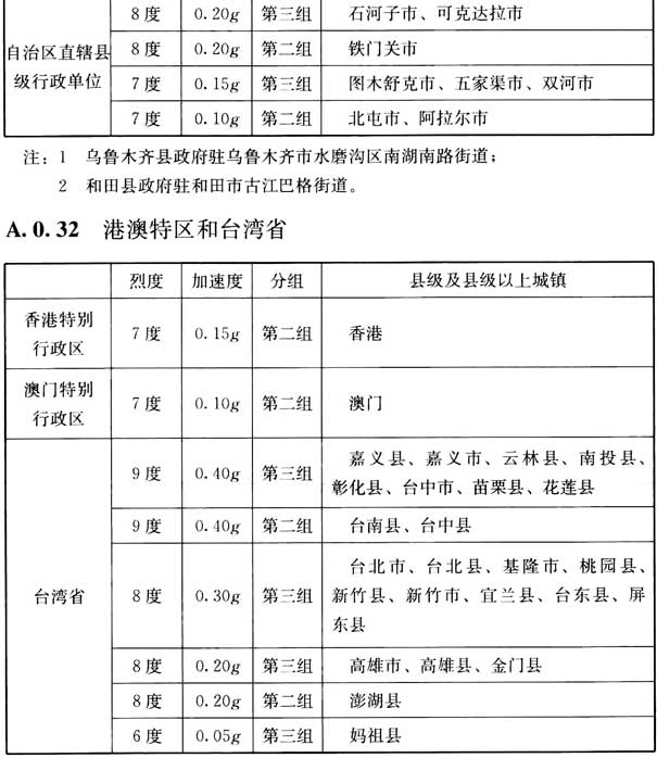 我國主要城鎮(zhèn)抗震設(shè)防烈度、設(shè)計(jì)基本地震加速度和設(shè)計(jì)地震分組
