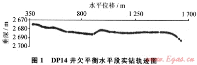 4) 在水平段欠平衡鉆井過程中采用EMWD,實(shí)現(xiàn)了水平段軌跡隨鉆測量和實(shí)時(shí)調(diào)整,圖1給出了DP14井欠平衡水平段實(shí)鉆軌跡。