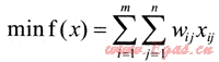 假設有m個外來氣源點,n個該城區(qū)燃氣供應(銷售)點。則令以a1,a2,…am表示各外來氣源點運至該市的輸出量,b1,b2,…,bn表示各供應(銷售)點的燃氣容納量(銷售量),有∑ai=∑bj。xij表示氣源地i運往供應點j的運氣量,wij表示相應的單位運氣量的運輸時間(單位運氣量的運輸時間因運輸方式的不同而改變),如表2所示