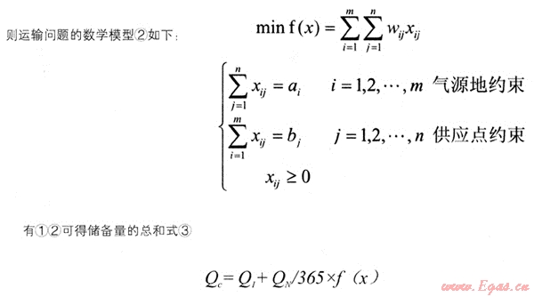 其次,確定上游氣源到目的地的最小運輸耗時。由于長輸管道因某種外部因素(地震,泥石流等)破壞導致無法輸配燃氣,必須依靠其他途徑運輸至城市內部(水運,陸運等)??梢酝ㄟ^建立線性規(guī)劃方程算出在滿足供氣量等于用氣量的情況下,從各氣源地運輸至城市供應點的最少必要時間。