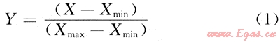 為了使各特征參數(shù)有利于對(duì)比,對(duì)測(cè)井曲線(xiàn)進(jìn)行歸一化[10~12]處理,即