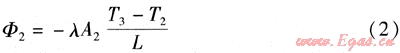 假設(shè)不考慮導(dǎo)熱桿的徑向?qū)幔鶕?jù)傳熱學(xué)定律,導(dǎo)熱桿的一維導(dǎo)熱量Φ2的計(jì)算式為: