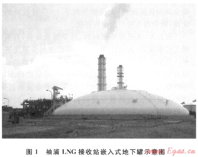 日本LNG接收站的儲(chǔ)罐,部分為地上罐,更多的是地下罐。日本這種大量采用地下罐的情況,幾乎為世界獨(dú)有現(xiàn)象,其原因可能為基于地震的安全考慮。具體的罐的類型分為:地上罐、半地下(上)罐、嵌入式地下罐、全地下罐。嵌入式地下罐為頂部或少量罐體露出地面,罐內(nèi)液體高度最高不超過地面;全地下罐為整個(gè)罐均處于地面下。地下罐的罐頂又分為兩種:拱頂形和平頂形。為保護(hù)環(huán)境景觀,地下罐周圍、甚至平頂?shù)叵鹿薜捻敳?,種植草木[6]。接收站除有LNG罐外,部分接收站還有LPG罐。