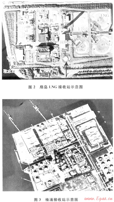 日本LNG接收站在總圖布局上,其廠區(qū)及泊位大都依工程條件呈不規(guī)則形狀布置,廠區(qū)填海區(qū)不多且均為填沙,碼頭泊位往往不與岸線平行,個(gè)別采用背靠背的泊位方式。如根岸LNG接收站廠區(qū)為帶轉(zhuǎn)折的長(zhǎng)條形,袖浦LNG接收站雖較方正但其泊位卻與岸線有一偏斜的夾角,扇島LNG接收站則通過海底隧道連接泊位,泊位成為在海灣中的一孤立平臺(tái)。2km的海管,袖浦站卸料總管最長(zhǎng)部分達(dá)3km(中途是否中繼加壓不詳)。日本的這種依工程具體條件的不規(guī)則的布置,與西歐(如西班牙)的LNG接收站比較類似。