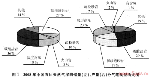 中國(guó)石濁目前開(kāi)發(fā)的氣藏類型較為復(fù)雜,低品位天然氣占較大比例(圖1),開(kāi)采技術(shù)難度較大。主要包括6類復(fù)雜氣藏:①低滲透砂巖氣藏,以蘇里格、長(zhǎng)北氣田為代表;②碳酸鹽巖氣藏,以靖邊、塔中氣田和川渝石炭系氣藏為代表;③火山巖氣藏,以徐深、長(zhǎng)嶺、克拉美麗氣田為代表;④超深高壓氣藏,以克拉2氣田為代表;⑤高含硫氣藏,以羅家寨氣田為代表;⑥疏松砂巖氣藏,以澀北氣田為代表。