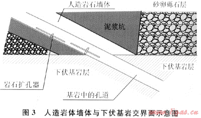 對制作“人造巖體”材料的配制比例進行適當(dāng)調(diào)整,可以消除“人造巖體”與下伏基巖之間存在的強度變異系數(shù),從而減小或消除因強度不同形成的DL值,而且“人造巖體”四周基坑可作為泥漿存儲坑,從而減小了施工作業(yè)場地的占地面積。