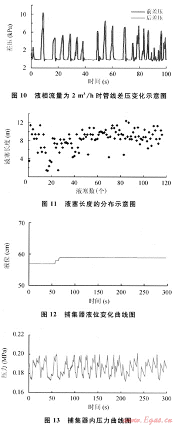 通過以上分析,可以得知該捕集器可以捕集較大長度的液塞,在較長液塞工況下,捕集器可以穩(wěn)定運行,能較好地分離氣液,捕集器內(nèi)壓力和液位都比較穩(wěn)定。