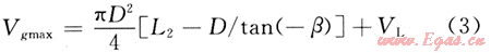 管式液塞捕集器的最大波動體積Vgmax與儲液段尺寸關(guān)系見式(3):