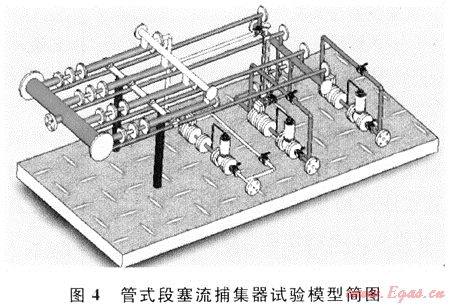 實驗環(huán)道的主要設(shè)備是管式液塞捕集器,根據(jù)實驗流量,設(shè)計為4管式,結(jié)構(gòu)形式與目前生產(chǎn)用的一致。其三維模型如圖4所示。