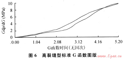 其特征主要表現(xiàn)為主裂縫閉合前G函數(shù)曲線凸起很高,一般數(shù)值在4以上(圖5)。該類儲(chǔ)層閉合前由于受多條微裂縫濾失影響,造成裂縫濾失不恒定且濾失大。