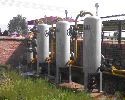 當(dāng)時(shí)市場上的氣源狀況是個(gè)別廠家嘗試少量生產(chǎn)車用氣源,但這種車用氣源無非是烯烴含量比民用氣少一些(當(dāng)時(shí)試用的車用氣標(biāo)準(zhǔn)限定丙烯含量不大于5%),但因其凈化工藝與民用氣是相似的所以雜質(zhì)含量相同,所以用起來效果是一樣的,就是都不能讓車正常平穩(wěn)的工作。這種情況不僅存在于丹東地區(qū),東北其他地區(qū)情況也很類似,所以作者計(jì)劃用這套裝置把民用氣的雜質(zhì)脫除后給車用。該套設(shè)備依據(jù)雜質(zhì)的類型不同將裝置制成三個(gè)梯次的凈化過程,然后再經(jīng)兩級精濾而成。制成后的設(shè)備安裝在在建中的丹東東港市液化氣有限公司的單家井加氣站。