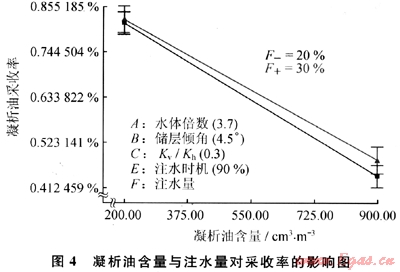 對于凝析油含油比較高的凝析氣藏需要的注水量相對較大,而對于凝析油含量較小的凝析氣藏,存在一個最優(yōu)的注水量使得凝析油氣總的采收率最大。