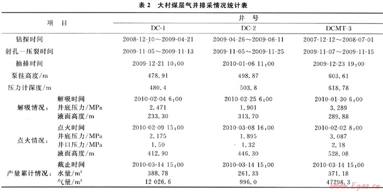 根據DC-1、DC-2、DCMT-3井水量和液面變化情況分別制訂了長沖程中等沖次、長沖程快沖次、長沖程小沖次的排采制度,較好的實現(xiàn)了3口井解吸、點火、上產的目的。目前各井正在穩(wěn)產或上產。