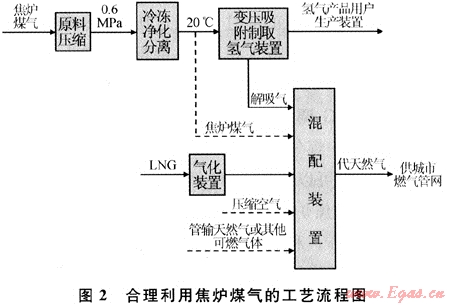 將煉焦企業(yè)、氫氣產(chǎn)品用戶與燃?xì)馄髽I(yè)聯(lián)合起來(lái),先將焦?fàn)t煤氣中的氫氣組分分離提純,以提高其附加值,然后將剩余的解吸氣體用于生產(chǎn)代天然氣產(chǎn)品供應(yīng)城市燃?xì)夤芫W(wǎng),實(shí)現(xiàn)低值產(chǎn)品高值利用。采用這種集成的工藝技術(shù),能夠使各種工況下的能源利用得到最優(yōu)化,是焦?fàn)t煤氣綜合利用的發(fā)展方向之一。