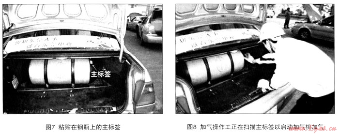 為全市每只CNG氣瓶(約6000只)配發(fā)一枚身份證(電子標(biāo)簽),對公交環(huán)衛(wèi)等車輛配發(fā)一枚身份證(車用氣瓶判定電子標(biāo)簽)。每臺車輛粘貼有2個標(biāo)簽,一個主標(biāo)簽(粘貼于鋼瓶上),一個副標(biāo)簽(粘貼于前擋風(fēng)玻璃內(nèi)側(cè)),副標(biāo)簽連續(xù)掃描10次后必須掃描一次主標(biāo)簽,循環(huán)掃描。將電子標(biāo)簽、氣瓶、車輛綁定在一起。建立車輛、氣瓶完整信息及全生命過程檔案信息庫,記錄其改裝、充裝、檢驗、報廢等過程每筆記錄。