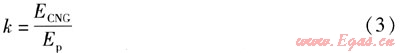 式中k——CNG發(fā)動機與汽油機單位體積混合氣理論含有能量之比[14]