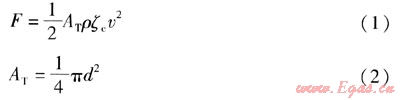在上述兩項作用力中,第一項力一般比第二項力大很多,靶式流量計主要是利用第一項力測量流體的流量。因此,在分析靶式流量計受力與流體流量之間的關(guān)系時,只考慮第一項力。根據(jù)伯努利方程,流體對靶片作用力F的計算式為: