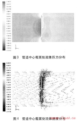 在對其他兩種形狀靶片進行模擬時,管道內(nèi)部流體壓力、速度分布與圓盤形靶片相似。但由于這兩種形狀的靶片與圓盤形靶片相比外形變化緩慢,因此采用這兩種形狀靶片時,流體的壓力、速度變化沒有采用圓盤形靶片時快。