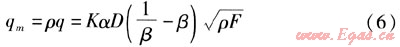 由式(5)可得到流體質(zhì)量流量qm的計算式為: