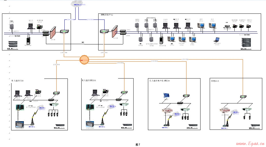 廣域網(wǎng)通信:對于SCADA系統(tǒng)的廣域網(wǎng)通信,從中心調(diào)度層到各站控系統(tǒng)的廣域網(wǎng)連接,通過廣域網(wǎng)路由器和租用專業(yè)通信公司的信道,以光纖或無線GPRS/CDMA方式,實現(xiàn)遠(yuǎn)程數(shù)據(jù)的傳遞和交換。通信協(xié)議采用MODBUS、DNP3等通信協(xié)議