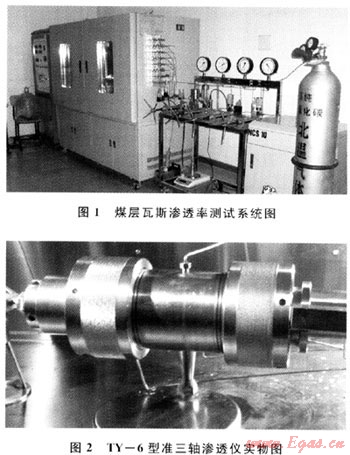 煤的滲透性研究對于研究瓦斯在煤層中的運(yùn)移非常重要[1~8],煤礦開采中的各種瓦斯動力現(xiàn)象如煤與瓦斯突出、煤層氣開采過程、瓦斯抽放等均與煤層的滲透性有關(guān)。我國煤層的滲透率一般為0.1~10mD,僅個別礦井測試數(shù)據(jù)達(dá)數(shù)十毫達(dá)西。與常規(guī)天然氣在巖層孔隙內(nèi)呈游離態(tài)的賦存狀態(tài)不同,煤層瓦斯在煤層裂縫系統(tǒng)中是游離狀態(tài),在孔隙和裂隙表面則以吸附狀態(tài)存在且90%以上都被吸附在煤基質(zhì)塊中。當(dāng)煤層溫度升高時,部分吸附瓦斯要解吸出來,變?yōu)橛坞x瓦斯,而溫度降低時,部分游離瓦斯變?yōu)槲酵咚?,煤層瓦斯的這種吸附解吸特性對煤層滲透性能有重要影響。另外,在煤礦生產(chǎn)過程中,因采動影響,煤層應(yīng)力重新分布,形成應(yīng)力降低區(qū)、集中區(qū)和原始區(qū),應(yīng)力的降低和集中使部分煤體伸張和壓縮變形,煤的滲透性發(fā)生變化,從而影響瓦斯的流動。因此,筆者實(shí)驗(yàn)研究了應(yīng)力和溫度影響下煤體的滲流規(guī)律,以期為煤礦瓦斯突出機(jī)理、瓦斯抽放的設(shè)計和優(yōu)化提供一定的理論參考。