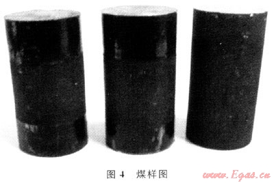 實(shí)驗(yàn)煤樣取自陽泉固莊煤礦,其煤層位于山西沁水煤田。在井下人工采集未受擾動的典型地質(zhì)單元的煤體,運(yùn)到地面后進(jìn)行蠟封、裝箱,在煤炭科學(xué)研究總院加工成Φ50×100mm的試件(圖4)。