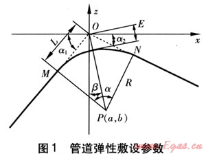在垂直面上彈性敷設(shè)管道曲率半徑要同時(shí)滿足大于等于1000D和大于管道在自重作用下產(chǎn)生的撓度曲線的曲率半徑兩個(gè)條件。