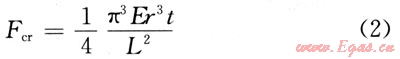 式中:E為彈性模量,Pa;r為半徑,m;t為壁厚,m;L為長(zhǎng)度,m。
