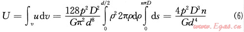 式中:G為剪切模量,Pa;P為軸向力,N;D為彈簧直徑,m;d為簧絲直徑,m;n為彈簧有效圈數(shù)。