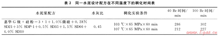 深井、超深井多采用尾管注水泥,水泥漿性能受溫度影響較大,準(zhǔn)確掌握循環(huán)溫度是確保施工作業(yè)成功以及封隔質(zhì)量的基本前提。目前循環(huán)溫度一般采用現(xiàn)場經(jīng)驗(yàn)法來確定。但是該方法從施工安全角度考慮,過高估計(jì)循環(huán)溫度,導(dǎo)致水泥漿頂替到位后靜膠凝強(qiáng)度發(fā)展緩慢,且靜膠凝強(qiáng)度過渡時間很長,增加了環(huán)空氣竄的幾率,并且由于緩凝劑過量,延長了水泥漿的候凝時間,影響后續(xù)施工作業(yè)[1~5]。