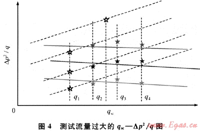 綜合這兩方面因素分析,如果測試流量過小,就會無法得出相互平行的修正等時試井產(chǎn)能曲線,以致增大測試結果的誤差。