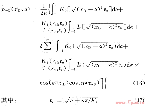 在定產(chǎn)量和定壓力兩種情況下,通過Laplace變換可分別求得生產(chǎn)井的壓力和產(chǎn)量為: