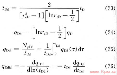 在繪制典型曲線前,對無量綱時(shí)間和無量綱產(chǎn)量進(jìn)行變換,引入如下變量[6]: