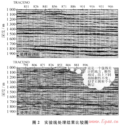 在常規(guī)相對保幅處理流程中,球面擴散振幅恢復(fù)模塊只能進行振幅恢復(fù)而不能進行頻率恢復(fù)。因此,用HHT疊前分頻頻率和振幅恢復(fù)模塊取代球面擴散振幅恢復(fù)模塊,從而達到疊前同時進行振幅和頻率恢復(fù)的目的,提高疊前數(shù)據(jù)的分辨率。聯(lián)合應(yīng)用混合相位反褶積與預(yù)測反褶積,進一步提高分辨率、壓制鳴震和多次波。疊加后,進一步應(yīng)用HHT疊后分頻頻率恢復(fù)技術(shù)或小波提高分辨率技術(shù)以及小波去噪技術(shù)。