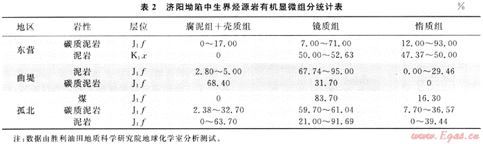 有機(jī)質(zhì)豐度是評(píng)價(jià)烴源巖非常重要的指標(biāo)之一,關(guān)系到烴源巖是否具有形成工業(yè)性油氣聚集的潛力。分析測(cè)試結(jié)果表明,濟(jì)陽(yáng)坳陷的蒙陰組與坊子組有機(jī)質(zhì)豐度相對(duì)較高(表1)。