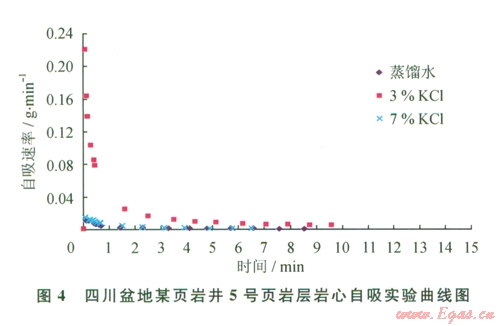1)對于烴源頁巖而言,采用常規(guī)的測量滲透率變化來表征其膨脹及分散特征是不可行的,而自吸實(shí)驗(yàn)、吸水膨脹實(shí)驗(yàn)等可作為此類頁巖氣藏評價(jià)的有效方法。