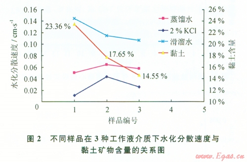 具備生、儲(chǔ)烴能力的頁巖必須通過大規(guī)模體積壓裂才能獲得工業(yè)開采價(jià)值。因此,上萬立方米的壓裂液使用量成為頁巖氣藏壓裂有別于常規(guī)氣藏壓裂的特點(diǎn)之一。與國外頁巖氣藏類似,在中國西南地區(qū)分布的四川盆地頁巖氣藏通常具有較高的黏土礦物含量。如某井含氣量最高的頁巖層段,其黏土礦物含量范圍在34.1%~45.9%之間,存在膨脹和分散的可能性。而頁巖所特有的致密、滲透率極低等特點(diǎn),往往使人們認(rèn)為外來液體幾乎沒有侵人頁巖的可能。同時(shí)頁巖所特有的致密特點(diǎn),使得在采用常規(guī)方法,希望通過滲透率的變化來定量描述黏土礦物膨脹、分散等特征對頁巖氣藏壓裂的影響時(shí),收效甚微。這樣的結(jié)果,也使得在進(jìn)行的頁巖氣藏壓裂設(shè)計(jì)、壓后評估中很少考慮頁巖中黏土礦物膨脹性和分散性特征產(chǎn)生的影響。