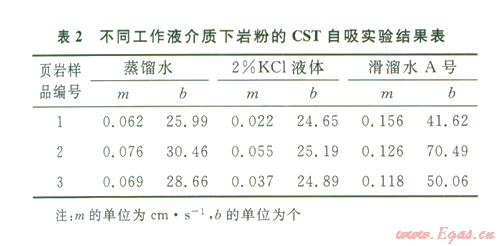 分別采用巖粉CST(毛細(xì)管吸入時(shí)間)法、巖心CST法、巖心層理面或人工縫的CST法來評價(jià)不同工作液介質(zhì)作用下頁巖的水化分散特征、吸收外來液體的特征以及不同裂縫特征下頁巖吸收外來液體的特征。